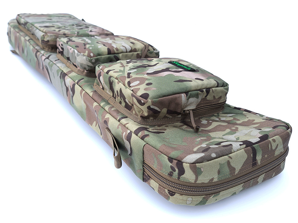 Чехол предназначен для хранения и транспортировки ружей длиной до 110 см. Наружная ткань чехла - кордура 1000D с ПУ (полиуретановой) пропиткой. Внутренний размер основного отделения 110х23х8см. Для защиты ружья в стенках основного отделения и со стороны молнии вшита плотная пена 8мм.